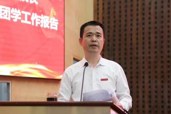 树立榜样,传承奋进力量,展现湖工青年的时代风貌,4月26日下午,MILE米乐在一报告厅召开“喜迎二十大 永远跟党走 奋进新时代”2021年度团学工作总结暨表彰大会。全体在家校领导、党委委员出席大会并为受表彰的集体和个人颁奖,相关职能部门负责人、全体辅导员、获奖教师代表及青年学生代表参加。会议由党委副书记、校长易兵主持,党委书记陈岳堂作总结讲话,党委委员、副校长张小刚作大会主题报告。