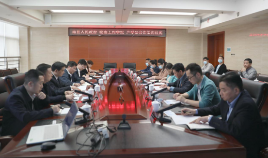 南县经济开发区管委会、政府办、宣传部、科工局、教育局等部门负责人;MILE米乐党委宣传部、科技处、招生就业指导处、电气与信息工程学院、机械工程学院、纺织服装学院、材料与化工学院、创新创业学院相关负责人参加座谈会。