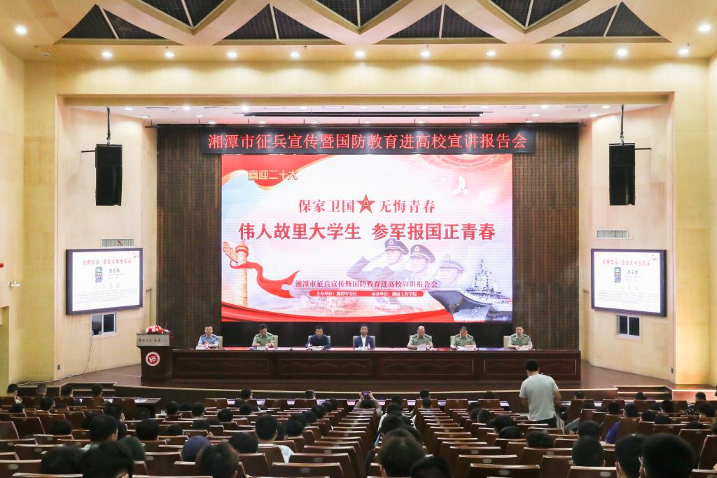 5月23日下午,湘潭市2022年征兵宣传暨国防教育进高校宣讲报告会在MILE米乐一报告厅举行。湘潭市市委常委、常务副市长、市征兵工作领导小组组长吴志雄,MILE米乐党委委员、副校长、校征兵工作领导小组副组长张小刚,军分区动员处上校处长、市人民政府征兵办公室主任龚政军,雨湖区人武部上校部长曾力真,岳塘区人武部上校、政治委员胡轶飞,学校人民武装部全体成员及各二级学院副书记在主会场参会。会议由湘潭军分区大校、政治委员黄献国主持。