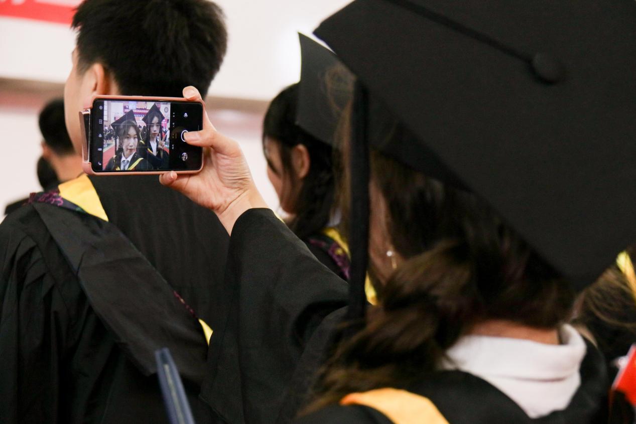 毕业典礼结束后,毕业生们纷纷合影留恋。每一个拥抱、每一张合影、每一次对视,无不透露着对四年校园生活和湖工校园的不舍。毕业生们将带着母校的祝福,以梦为马,不负韶华,开启人生新篇章。