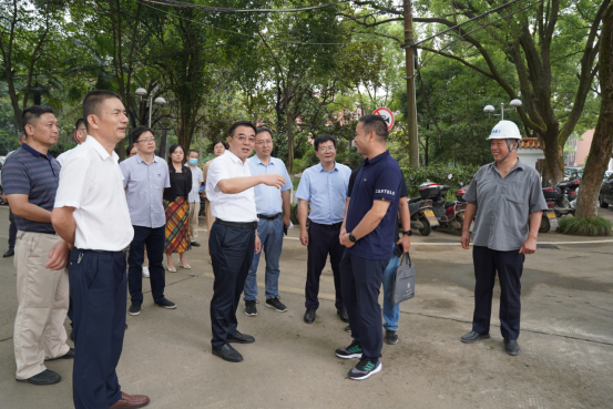 陈岳堂、易兵一行先后来到主校区(北)周边、学生宿舍,南校区学生宿舍、办公楼,主校区学生宿舍等处全面检查开学各项准备工作;重点检查教室改造、宿舍环境改造、生活设施保障、疫情防控工作等准备情况;听取各项目工作进度汇报,深入了解暑期各项目的推进情况;对取得的工作成效给予了肯定,针对检查发现的问题,提出整改要求。