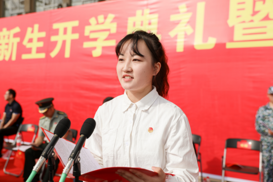 设计艺术学院夏雨作为新生代表发言,他表示在大学时光里,学会认知、学会做事、学会做人,刻苦学习专业,积极探索,努力前行。
