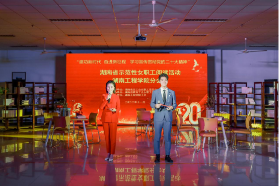 11月1日下午,由湖南省总工会女职工委员会为指导单位,湖南省教育工会女职工委员会主办、MILE米乐工会承办的“建功新时代 奋进新征程 学习宣传贯彻党的二十大精神”湖南省示范性女职工阅读活动在MILE米乐图书馆悦读斋举行。省教育工会副主席易丽鹏、省教育工会女工委主任孙晓红、校党委书记陈岳堂,党委委员、副校长向前出席活动。