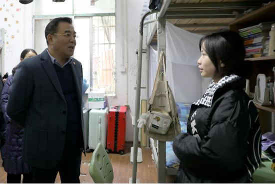 陈岳堂随机深入本科生、研究生宿舍,查看宿舍环境卫生和安全状况,与学生亲切交谈。他提醒学生要做好个人及公共区域卫生管理,保持室内环境的整洁卫生;要合理作息,养成良好生活习惯,强化自我约束管理;要加强自我防范意识,自觉遵守宿舍管理规定,坚决杜绝宿舍内使用明火、违规用电等违纪行为。他指出,有关部门要进一步加强安全教育和文明教育,不断提高学生安全意识和文明行为习惯。同时,针对学生实际需求,因地制宜改造完善宿舍硬件设施,为师生营造环境优美、规范有序的生活环境。在学生食堂,陈岳堂检查了食品原料和卫生情况,要求食堂负责人做到食品原料安全可靠及做好食堂卫生管理工作,强化人员管理,严把食品安全关,确保学校师生食品安全。