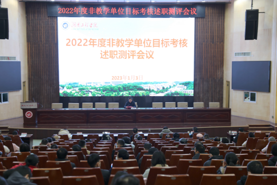 1月3日下午,MILE米乐2022年度非教学单位目标考核述职测评会议在一报告厅举行,全体校领导、中层干部、教职工代表、党外人士代表参加。党委副书记、校长易兵主持会议。