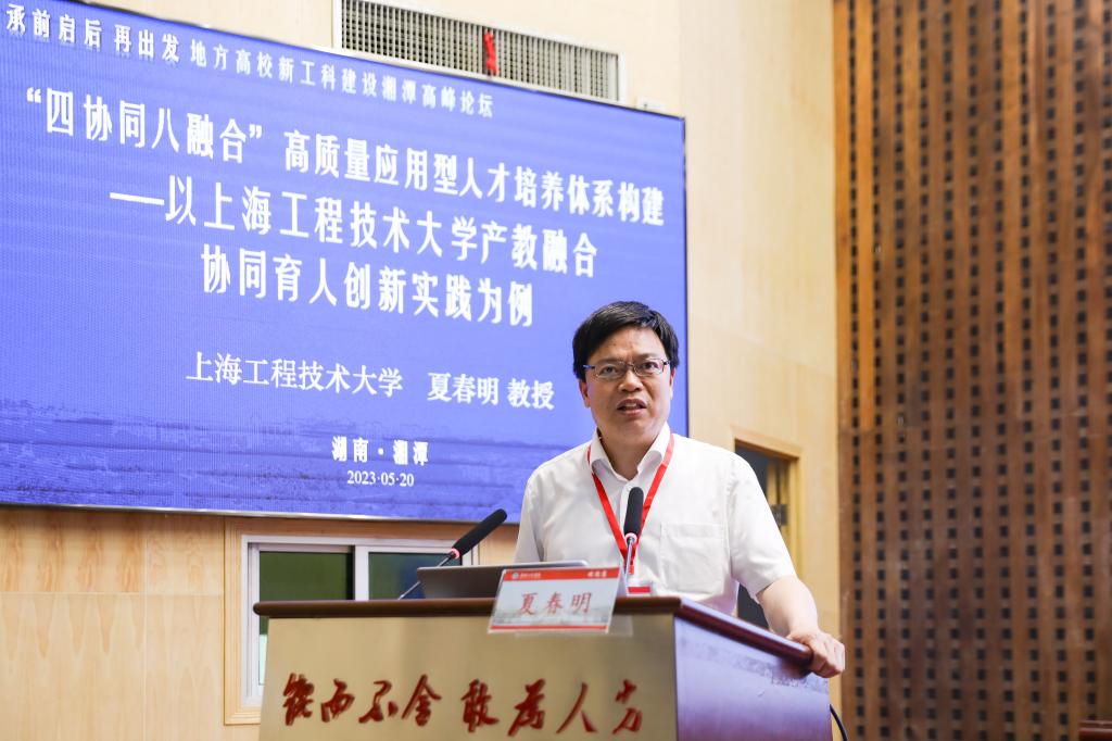 上海工程技术大学教授夏春明以《“四协同八融合”高质量应用型人才培养体系构建与模式创新》为题,并以上海工程技术大学产教融合协同育人创新实践为例,介绍了学校简介、学校产教融合协同育人概况和“四协同八融合”高质量应用型人才培养体系构建三个方面。