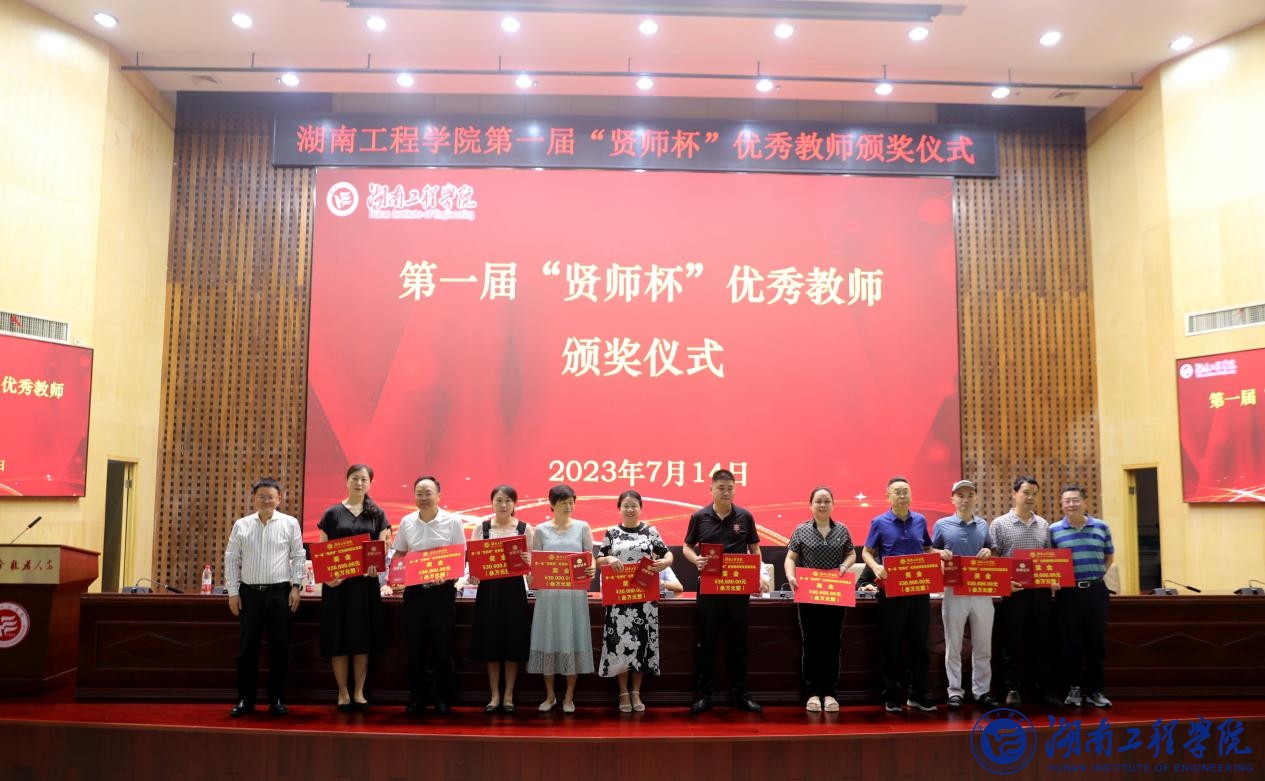 7月14日下午,第一届“贤师杯”优秀教师颁奖仪式在MILE米乐一报告厅举行。颁奖仪式由党委委员、副校长魏克湘主持。校党委委员、副校长罗毅平,校党委委员、纪委书记齐路良,校党委委员、副校长张小刚、向前出席颁奖仪式。