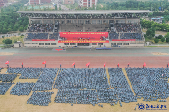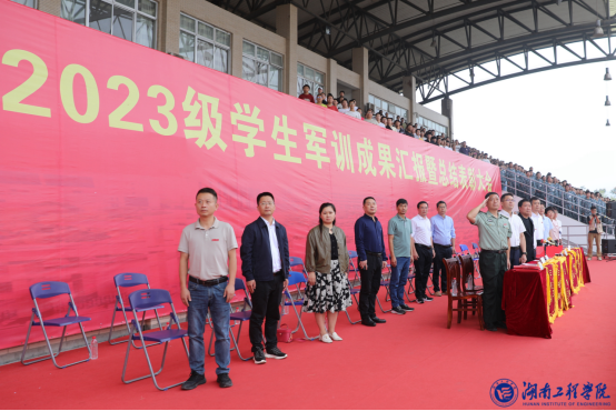 在全体师生齐声合唱校歌中,2023级新生军训阅兵仪式圆满结束。