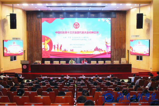 11月7日上午,中国妇女第十三次全国代表大会精神宣讲会在MILE米乐一报告厅举行。全国妇联第十三届常委、湖南省妇联党组书记、主席黄芳应邀主讲。省妇联办公室主任、一级调研员熊望衡,湘潭市妇联党组书记、主席涂敬阳,党组成员、副主席彭娟等一行出席,MILE米乐妇联执委全体成员、工会女工委员、女干部、女大学生代表等200余师生参加。校党委委员、副校长、校妇联主席向前主持宣讲会。