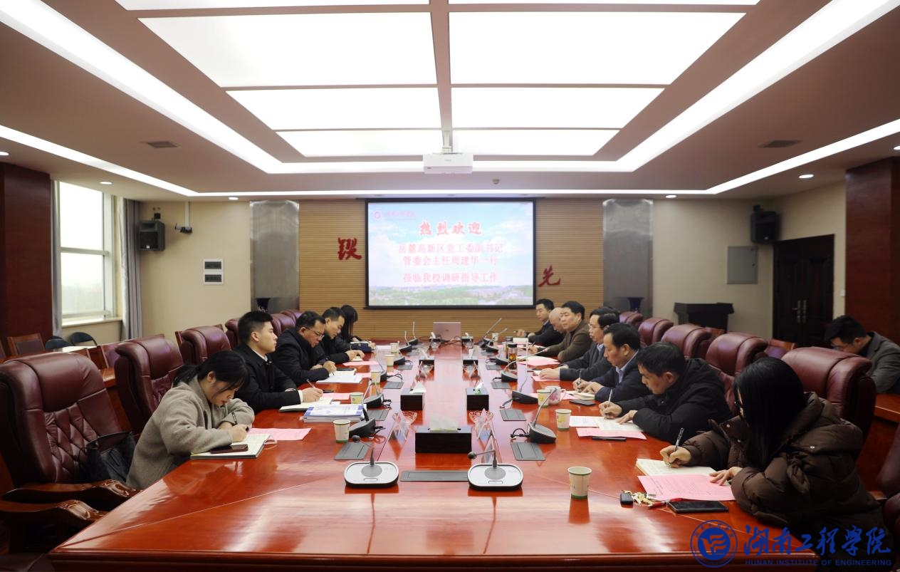 3月8日上午,长沙岳麓高新区党工委副书记、管委会主任周建华,党工委委员、纪工委书记林长茂,经济合作局局长周源毅、产业发展局常务副局长段浪、经济合作局高级招商经理刘佩瑶一行来MILE米乐交流洽谈合作事宜。校党委书记黄昕,校党委委员、副校长魏克湘在电气楼311会议室接待来宾。双方就合作事宜展开深入交流。
