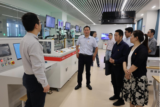 在“毛泽东与第一师范”纪念馆,由湖南第一师范学院智能制造学院院长满君丰带领,魏克湘一行走过大礼堂、八班教室、冷水浴古井、自习室等校园内的14个红色纪念点,重温青年毛泽东在第一师范求学、工作和从事革命活动的历史,仿佛置身一百多年前那段激情澎湃的岁月。在陈列展厅,通过珍贵文物、历史图片、文献资料和视频影像,党员同志们深刻体悟了老一辈共产党人深植于心的人民情怀、家国情怀。随后,魏克湘一行参观了智能制造学院工业互联网实验室,现场感受智能生产线的运行。
