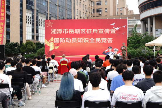 为进一步提升全民国防意识,引导全民强化国防观念,形成关心国防、热爱国防、建设国防、保卫国防的共同认识,开展政策宣讲,点燃参军热情增强全民国防观念和国防动员意识,6月6日下午,由湘潭军分区、市国防动员办、市委宣传部、岳塘区人武部统一部署,MILE米乐承办的征兵宣传暨国防动员知识竞答活动在主校区知行广场成功举办。湘潭市委常委、湘潭军分区政委黄献国,湘潭军分区动员处处长龚政军,岳塘区委常委、区人武部政委胡轶飞,校党委委员、副校长张小刚等领导出席并观看活动。