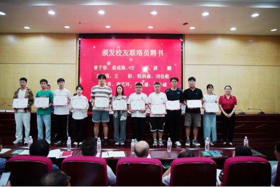 会上,校友联络中心主任张宏介绍了学校校友会工作情况,并就学校推进“校友回湘”的相关工作进行了汇报。校友联络中心副主任李儒峰宣读了《关于聘任陈策博等402位同学为MILE米乐官方网站2024届毕业生校友联络员的通知》。与会领导为校友联络员代表颁发了聘书。