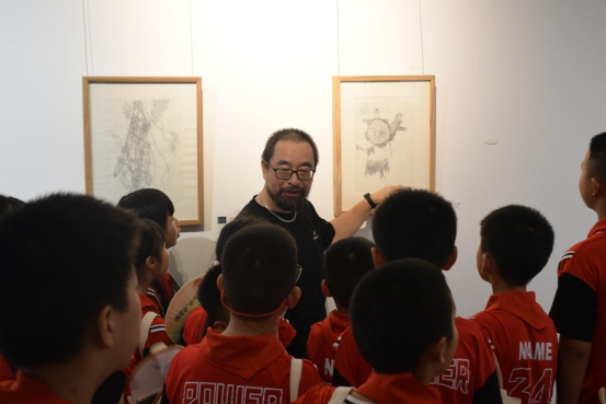 老师为孩子们介绍绘画作品