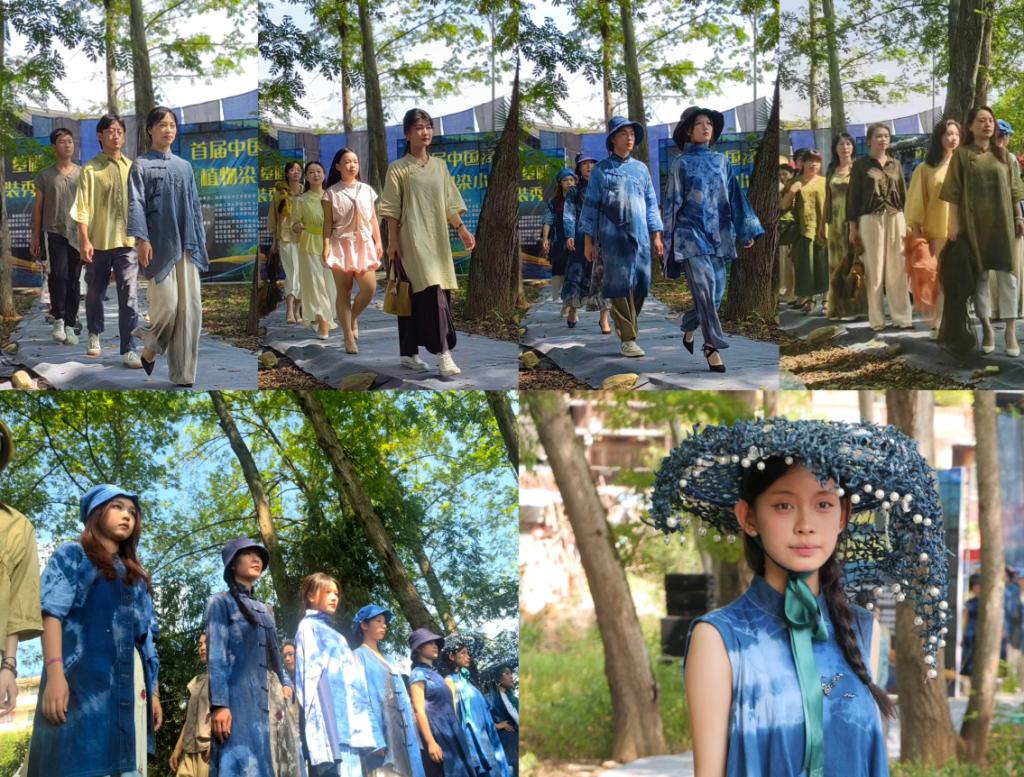 8月10日,林城镇墓脚村山水植物染服装模特秀成功举办,学员们穿着自己染色的服装,走上搭建在天然山水之间的T台,展示了传统与现代相融合的独特魅力。模特秀展现了学员们在研修班中的学习成果,也为植物染这一传统技艺在现代社会中的应用和发展提供了思想方向。