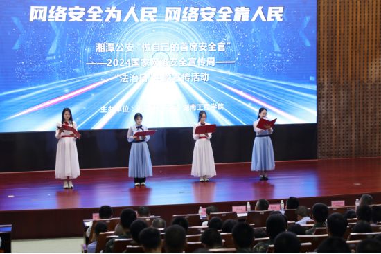 活动中,来自湘潭大学计算机学院的同学结合身边的真实案例,以《青年说“网海冲浪、安全为先”》为题,用脱口秀的形式,为大家揭示了网络安全的重要性;岳塘公安分局的反诈民警用一首改编歌曲《爱情买卖》为大家揭示了“杀猪盘”等常见网络诈骗套路;MILE米乐学生用一首诗歌朗诵《安全与法治》,讲述了安全与法治的关系,并号召大家一起学法懂法用法,共同构筑起生活的坚固防线。