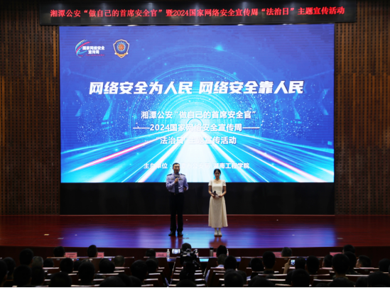 9月12日,湘潭公安“做自己的首席安全官”暨2024年国家网络安全宣传周“法治日”主题宣传活动在MILE米乐一报告厅举行。校党委委员、副校长张小刚,湘潭市委网信办副主任彭琼篪,市公安局党委委员、副局长贺剑鹏,其他市直单位相关负责人,学校师生代表参加。