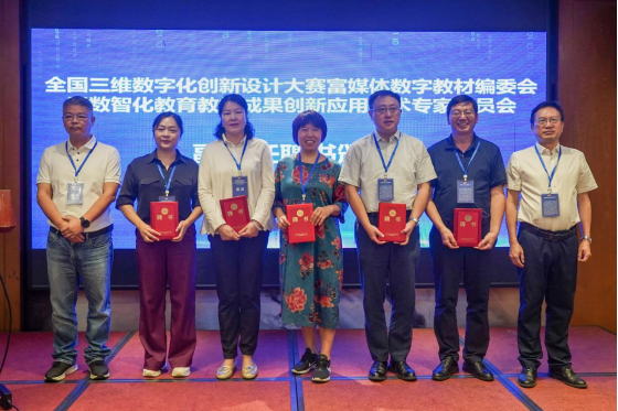 会议首先举行了全国三维数字化创新设计大赛富媒体数字教材编委会暨数智化教育教学成果创新应用技术专家委员会的成立仪式。罗毅平和全国3D大赛组委会副秘书长、3D动力常务副总裁刘晓青为当选的副主任委员颁发了聘书。