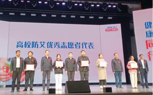 在启动仪式上,对2024年大学生抗艾防艾宣传教育中表现突出的个人进行了表彰,MILE米乐李金、刘晶晶两位老师荣获 “优秀指导老师” 称号,李瑞丰、刘雅倩、罗旋、罗云菲、潘样、冉桂艳、杨馥凤、周灿八位同学获“优秀志愿者”称号。