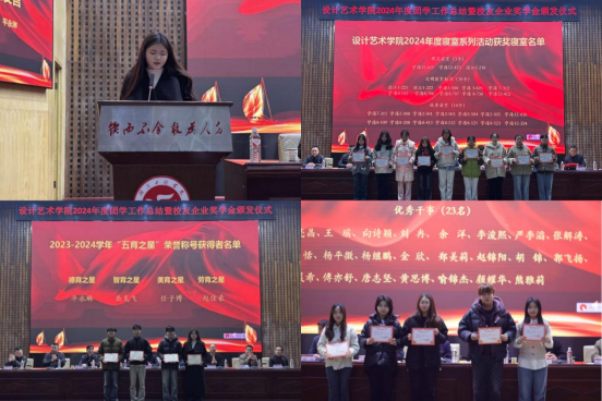 会上,多项表彰决定宣读,荣誉证书与奖金颁发至获奖个人和集体。环境设计22级平永琳作为学生代表发言,感恩学校培育,坚定学习信念。校友代表张澎分享学习、职业心得,为学弟学妹传经送宝。
