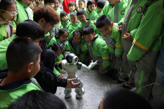 智能装备湖南省科普基地的机器人表演成为活动焦点。学院科技创新团队带来的编程机器人随音乐翩翩起舞,吸引了全场目光。在志愿者指导下,小学生们借助简易指令卡操控机器人完成避障、搬运等任务,亲身感受人工智能的魅力。面对孩子们的好奇提问,志愿者用“智能传感器如同机器人的眼睛”“程序代码好似机器人的大脑”等形象比喻,深入浅出地讲解核心技术原理。