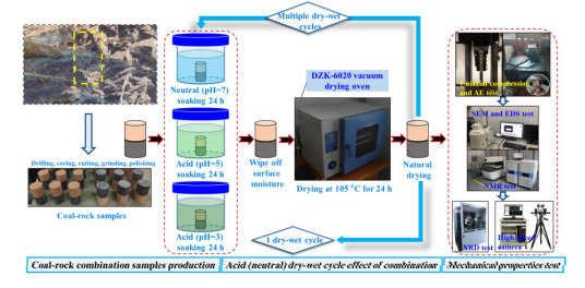 传统煤岩劣化研究多聚焦于单一岩性材料,忽视了煤与岩石复合体在酸性环境下的协同劣化机制,尤其是微观结构演化与力学性能衰减之间的耦合关系尚不明确。该研究系统构建了酸性干湿循环下煤岩组合体的多尺度退化实验体系,结合单轴压缩、声发射监测、扫描电镜和核磁共振等多源技术手段,揭示煤岩界面处裂隙演化、微观孔隙重构及其对整体结构稳定性的影响。论文中提出的煤岩耦合劣化模型不仅深化了岩体环境损伤演化机制的理解,而且为酸雨区露天矿边坡稳定性评估提供了科学依据和工程实践支持。