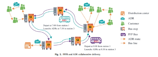 研究团队基于自动配送机器人(ADR)技术的快速发展,提出了一种城乡公交班车协同ADR开展快递投递服务的模式。针对该模式中公交与ADR协作配送车辆调度的关键问题,团队进行了数学建模与特征研究,并成功提出一种知识驱动的自适应延迟接受迭代爬山启发式算法,以高效求解该问题。该研究为城乡客货邮融合发展提供了新模式与新方法。