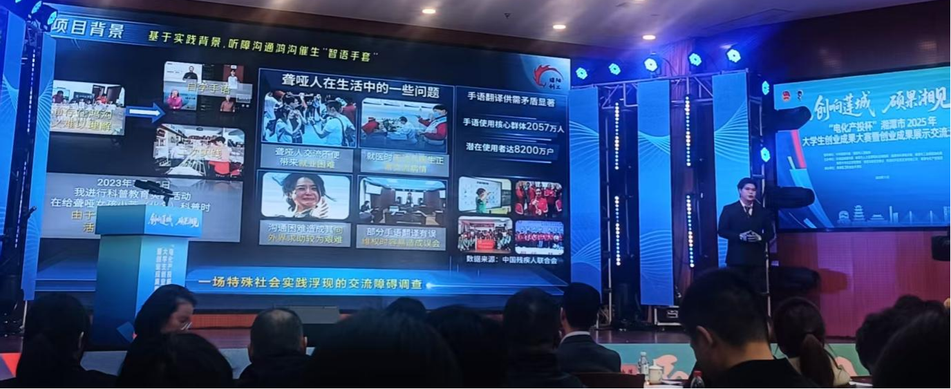 刘定阳团队的“全域智译——多场景智能手语翻译系统”、褚盛贵团队的“云驰气浮”摘得金奖;寻朝团队的“全屋智能家居设备的研发销售与安装服务”获得银奖;匡浩团队的“瞬绘智界——AI赋能跨境增长新引擎”、肖联涛团队的“多功能智能仿生蝴蝶”拿下铜奖;李咏秋团队的“启悦健康”等8个项目获优胜奖。