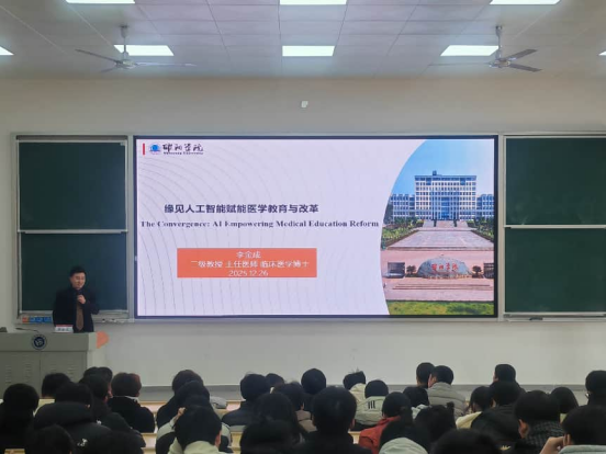 李金成结合人工智能技术的最新发展,系统阐述其在医学教育中的多元应用场景及未来趋势。他立足自身丰富的教学与临床经验,具体分析人工智能在医学课程重构、临床技能训练、教学评价优化以及个性化学习支持等方面的积极作用,并就人工智能推动医学教育体制机制改革的可行路径与现实挑战进行了深入探讨。他指出,在“新医科”建设与教育数字化战略深入推进的背景下,人工智能不仅是先进的技术工具,更是推动医学教育现代化转型的重要引擎。他鼓励师生主动把握技术变革机遇,积极探索智能教育与临床实践深度融合的新模式,为培养适应未来健康事业发展的卓越医学人才贡献力量。
