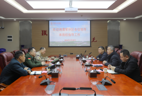 3月20日,湘潭市军分区司令员刘静波来MILE米乐调研,党委委员、副校长张小刚,武装部相关负责人参加。