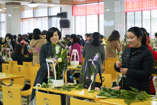 早春二月,细雨霏霏。3月8日,校工会女工委员会为全校女职工精心准备的“庆三八”花艺沙龙活动在主校区明德二食堂举行,近400名女职工兴高采烈地参加了此次活动。