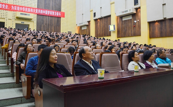 10月31日晚,木鱼湖论坛第八讲在一报告厅举行,湖南科技大学吴广平教授做客木鱼湖论坛,作题为“庄子的智慧”学术讲座。党委宣传部部长曾曙林主持论坛,400余位师生和社会各界朋友到场聆听,全场座无虚席。