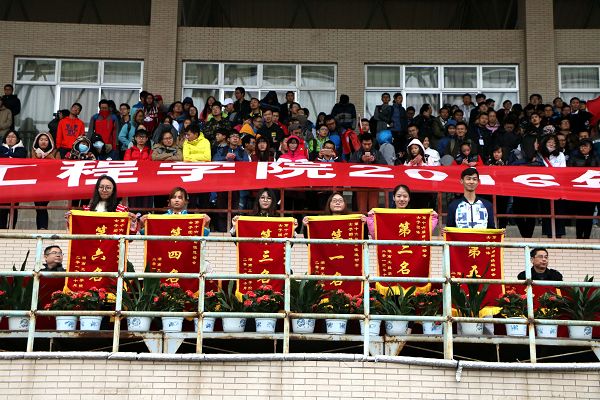 所有比赛完成后,运动会总裁判长、体育教学部赵巍宣布比赛成绩,夺得男子团体总分前三名的分别为电气信息学院、计算机与通信学院、机械工程学院;获得女子团体总前三的分别是,化学化工学院、电气信息学院、应用技术学院。学生工作处处长刘涛宣布精神文明奖评比结果,研究生队、机械工程学院、经济学院等6个学院获奖。颁奖环节,全场掌声不断,喝彩声连绵不绝。