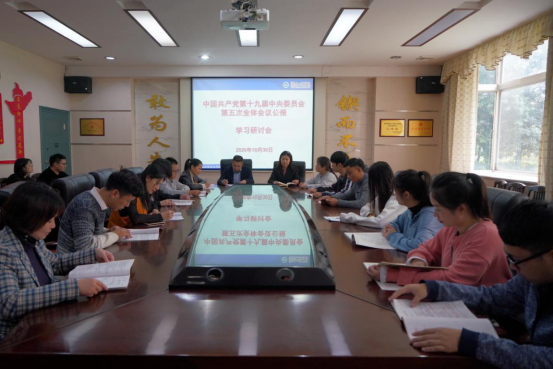 10月26日至29日,中国共产党第十九届中央委员会第五次全体会议在北京召开。百年交汇,谋篇布局。这次会议的召开和释放的信号,为中国和世界发展注入更强大的信心。10月30日下午,马克思主义学院于教学楼E座125会议室召开《中国共产党第十九届中央委员会第五次全体会议公报》学习研讨会,认真传达学习贯彻党的十九届五中全会精神。会议由马克思主义学院党总支书记谢卫平主持,马克思主义学院副院长邓学源领学相关文件。