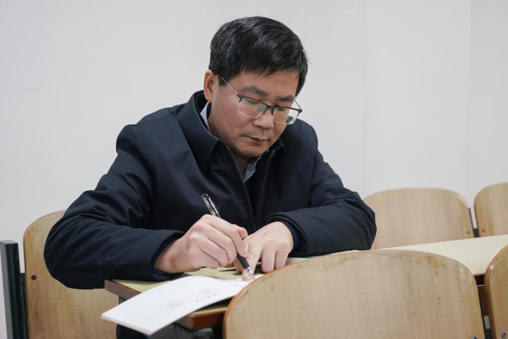 在D栋教学楼301教室,104名机械工程学院学生秩序井然。他们被刘灵老师的讲课深深地吸引,课堂灵动而富有生机,朝气蓬勃。校长易兵认真倾听了刘灵老师《马克思主义基本原理概论》的课堂讲授,并做了详细的听课记录。