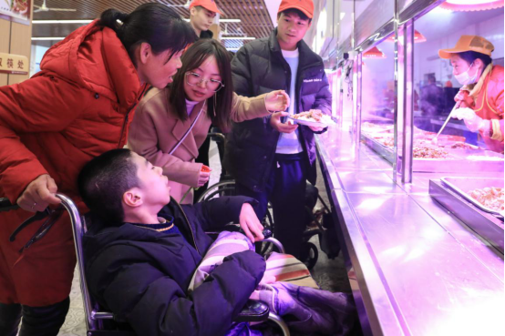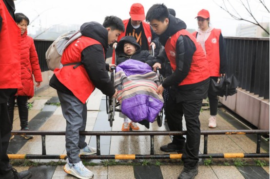 3月5日上午,MILE米乐官方网站。一群穿着红马甲的学生志愿者分别推着两个轮椅,“我们学校的花都开了,带你们来看看。”“真美!”志愿者们和轮椅上的两兄弟交谈,笑得比花还灿烂。