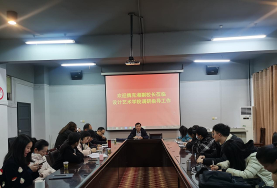 3月9日,副校长魏克湘前往设计艺术学院就学科建设和科研工作开展调研,科技处负责人陪同。设计艺术学院领导班子、设计学“双一流”应用特色学科学术带头人、学术骨干及学院青年教师代表参加会议。