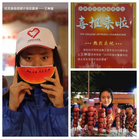 “我们将自己的理想追求融入国家民族发展进程之中,投身服务乡村振兴,并以实际行动彰显担当作为,向社会传递志愿服务精神,引领社会新风尚”。从美丽富饶的江南水乡,前往锦绣壮丽的大美新疆,MILE米乐2020届毕业生、2020年度吐鲁番市优秀大学生西部计划志愿者王琳璇用甘于奉献的热血之心投身于大学生西部计划,与她同行的还有李小琴、文静、康清婷,她们是“高山上的小草”,也是学校在疆志愿服务西部的“四朵金花”。