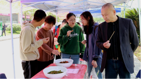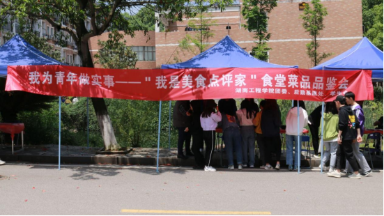 “我为群众办实事”,食堂菜品等你评!4月29日中午,校学生会联合团委及后勤基建处在主校区明德一、二餐厅旁举行“我为青年做实事——我是美食点评家”食堂菜品评鉴会,许多经常出现于湖工人微信朋友圈中的“网红餐品”一一亮相。红烧肉、五彩水饺、大盘鸡、孜然牛肉、水煮鱼片……色香味俱全的佳肴齐齐摆上桌,广大师生纷纷扮演起“美食点评家”的角色,对食堂菜肴进行品尝并点评。