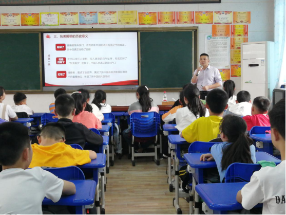 活动现场,支部书记邓学源为湘钢一校六年级学生讲授题为“抗美援朝:新中国的立国之战”的党课,他从为什么要抗美援朝、抗美援朝的经过、抗美援朝的历史意义等方面,描述了中国共产党领导的人民志愿军保家卫国的壮丽史诗。课上,邓学源希望同学们能够继承和弘扬抗美援朝战争中展现的祖国和人民利益高于一切、为了祖国和民族的尊严而奋不顾身的爱国主义精神,英勇顽强、舍生忘死的革命英雄主义精神,不畏艰难困苦、始终保持高昂士气的革命乐观主义精神,为完成祖国和人民赋予的使命、慷慨奉献自己一切的革命忠诚精神,以及为了人类和平与正义事业而奋斗的国际主义精神。