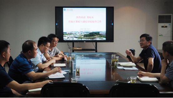 6月16日下午,校长易兵一行来计算机与通信学院调研学科建设、师资队伍建设、学生管理等工作,座谈会在E307会议室举行。学校党政办公室副主任赵中华陪同。计算机与通信学院(人工智能产业学院)党总支书记何宏、院长张细政率学院领导班子、各教研室主任、在读博士、两办主任参与座谈。
