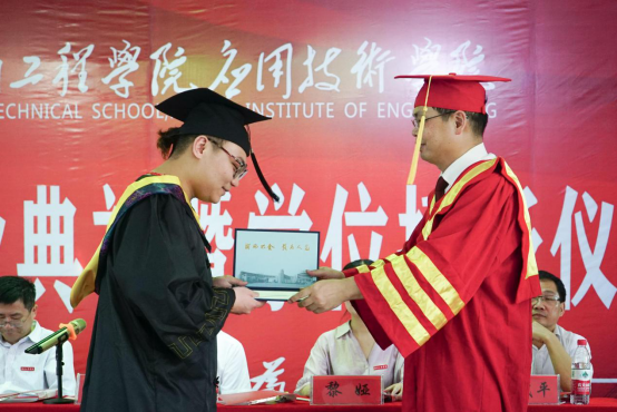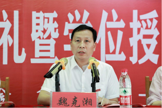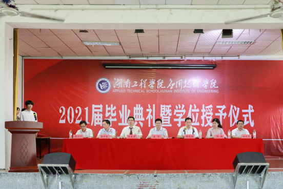 6月23日15:10,MILE米乐官方网站应用技术学院2021届毕业生毕业典礼暨学位授予仪式在南校区一教四楼活动中心举行。校长易兵,副校长魏克湘,应用技术学院院长李光中,党委书记黎娅,副院长梁开健、胡武平,党委副书记陶连洲出席毕业典礼。典礼由魏克湘主持。