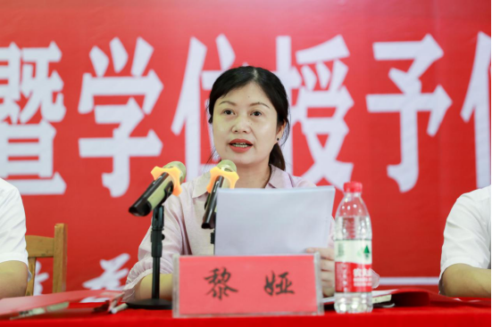 黎娅宣读2021届省、市、校级优秀毕业生表彰文件,31人被授予省级优秀毕业生,26人被授予市级优秀毕业生,92人被授予校级优秀毕业生。现场领导为优秀毕业生颁发荣誉证书。