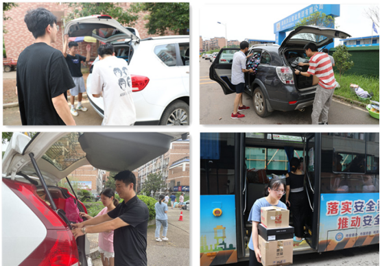 “滨江6112寝室的男生搬完行李后,认真地打扫好房间,给即将入住该寝室的其他同学留下一份干净和暖心。”“已经是第五趟上到六楼了,能帮助到其他同学我很开心。”“班主任又当‘货车’司机,又当‘搬运工’,全程陪着我们,让我们感到很温馨。”“汗水很咸,心里很甜……”为配合搬迁工作顺利进行,各学院提前布局,或是统一购买编织袋,或是租用公交车、货车搬运,或是安排学生共产党员、入党积极分子、志愿者等加入到宿舍搬迁的过程中来。搬迁现场,志愿者们协助打包、搬运、看管行李等,只要有需要,他们就在你身边。随处可见的还有辅导员、班主任、任课教师,他们开着自己的私家车往返于搬迁楼栋之间,加快搬迁速度。