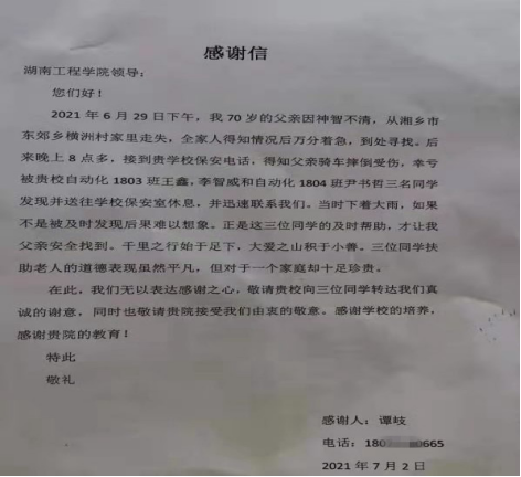 “感谢MILE米乐官方网站三名同学发现我受伤的父亲,如果不是他们及时发现,后果难以想象。”7月2日,一封感谢信送到学校,这封感谢信背后是什么暖心故事呢?