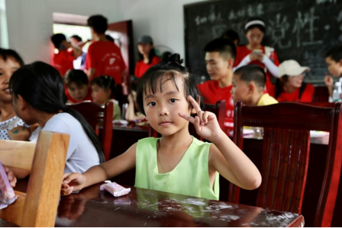 “听我说,谢谢你,因为有你,温暖了四季……”,教室里传来了孩子们嘹亮的歌声。校学联实践团成员来到铺平村当地小学,通过提问、玩游戏、唱歌、送礼物等方式,和小朋友们打成了一片。随着欢快的旋律响起,小朋友们张开嘴巴,用稚嫩却有力的声音唱响歌曲,歌声表达了他们内心的感谢。