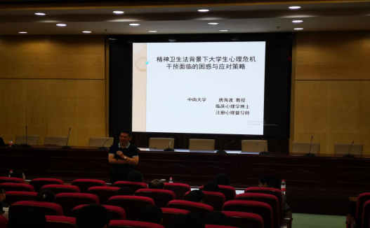 24日上午,中南大学心理健康教育与咨询专家唐海波教授带来了主题为——“精神卫生法背景下大学生心理危机干预面临的困惑与应对策略”讲座,阐述了《精神卫生法》相关内容,并结合实际,引用大量案例,给大家带来了一堂生动活泼的心理健康教育课,也为MILE米乐辅导员更好地开展心理工作提供了重要的借鉴经验。