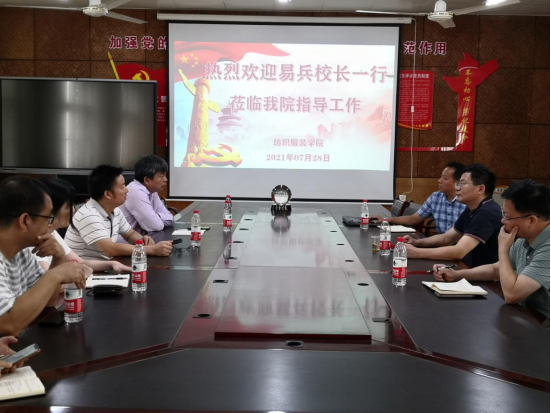 7月28日上午,校长易兵、副校长魏克湘到纺织服装学院调研,详细了解学院基本情况,在省属同类高校中专业排名情况、特色及学院发展中存在的困惑,以期谋求学院的长足发展和突破。调研座谈会在电教楼201会议室举行。纺织服装学院党政领导班子,部分老师参加座谈。