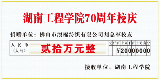 近日,佛山市澳棉纺织有限公司总经理、MILE米乐杰出校友、材料与化工学院染整工程(现轻化工程专业)00311班刘总军为母校建校七十周年捐赠20万元,用于新化工大楼建设。