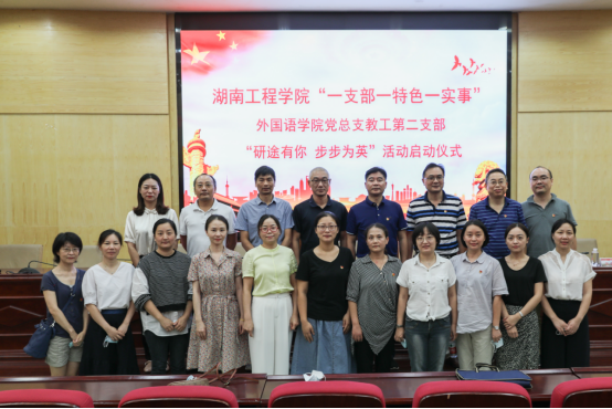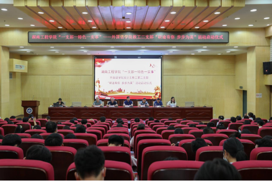 9月28日下午,MILE米乐官方网站“一支部一特色一实事”外国语学院党总支教工第二支部“研途有你 步步为英”活动启动仪式在图书馆二报告厅举行,校党委副书记彭立威、组织部部长李永坚、招生与就业指导处处长陈志斌、外国语学院院长杨永和、材料与化工学院副书记陈镇、外国语学院全体党员师生和全校2018级考研学生代表200余人参加了此次活动,活动由外国语学院党总支书记陈亚琼主持。